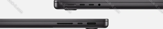 3x Thunderbolt 4 / USB4 с DisplayPort 1.4 (40Gb/s, PD-Out, сетевой разъём питания PD-In), 1x HDMI 2.1, 1x 3.5 мм аудио-разъём, 1x SD Card, 1x DC-In Apple MagSafe 3 (сетевой разъём)