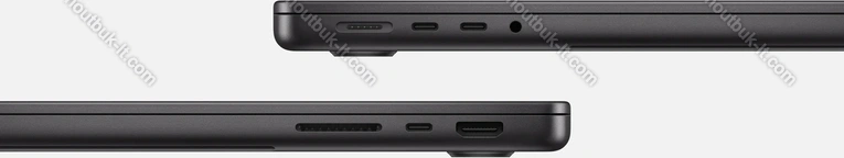 3x Thunderbolt 4 / USB4 с DisplayPort 1.4 (40Gb/s, PD-Out, сетевой разъём питания PD-In), 1x HDMI 2.1, 1x 3.5 мм аудио-разъём, 1x SD Card, 1x DC-In Apple MagSafe 3 (сетевой разъём)