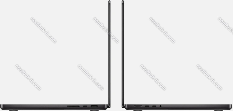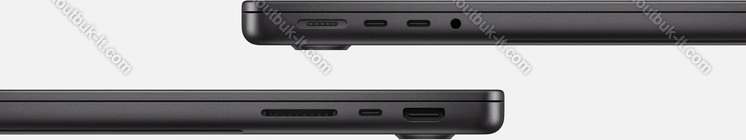 - 3x Thunderbolt 5 / USB4 v2 с DisplayPort 2.1 UHBR20 (80Gb/s, сетевой разъём питания PD-In), 1x HDMI 2.1, 1x 3.5 мм аудио-разъём, 1x SD Card, 1x DC-In Apple MagSafe 3 (сетевой разъём)