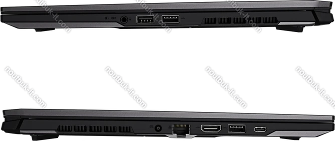 1x USB4 с DisplayPort 1.4 (40Gb/s, PD-Out), 2x USB-A 3.0 (5Gb/s), 1x USB-A 2.0 (480Mb/s), 1x HDMI 2.1, 1x 3.5 мм аудио-разъём, 1x RJ-45 (1000Base-T), 1x DC-In разъём питания