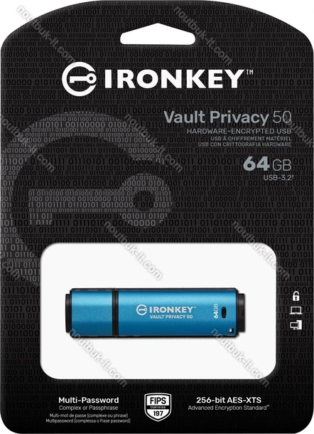 Флешка Kingston IronKey Vault Privacy 50 64GB, USB-A 3.0 купить в интернет-магазине в Вильнюсе: недорого, кредит-онлайн, рассрочка 0% и бесплатная доставка по Литве