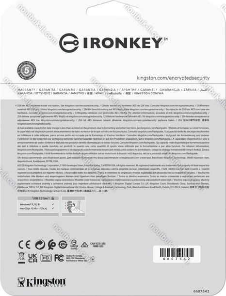 - 256bit AES-шифрование, FIPS 197, IPx8 сертификат