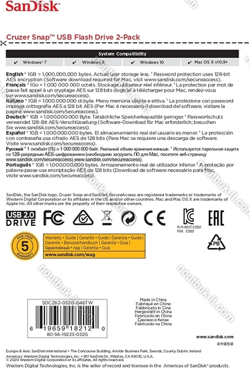 Флешка SanDisk Cruzer Snap 32GB, USB-A 2.0, 2er-Pack, Литва |