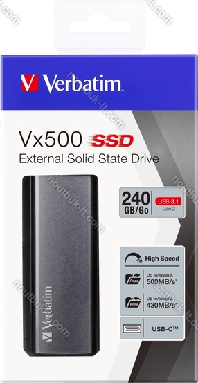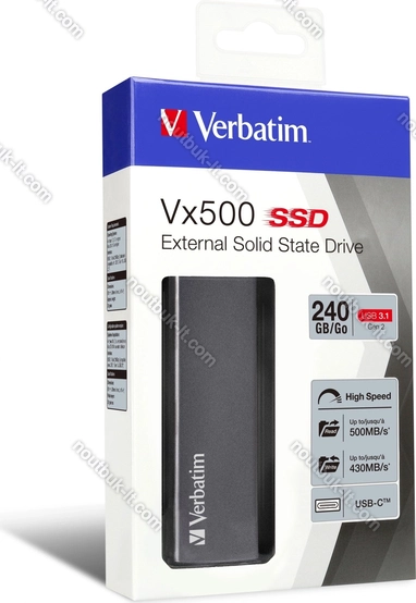 Внешний диск Verbatim Vx500 External Solid State Drive, 240GB, USB-C 3.1 купить в интернет-магазине в Вильнюсе: недорого, кредит-онлайн, рассрочка 0% и бесплатная доставка по Литве