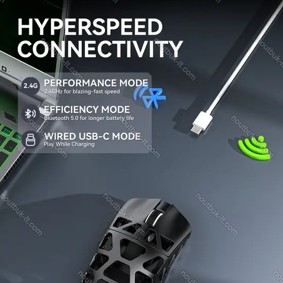 - проводное (1.5m), USB-A 2.0 или беспроводное (2.40GHz), USB-A (USB-A receiver) или беспроводное (Bluetooth 5.2), съемный кабель питания (USB-C socket)