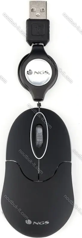 Мыш NGS Sin Laptop Mouse with Retractable cable black, USB, Литва