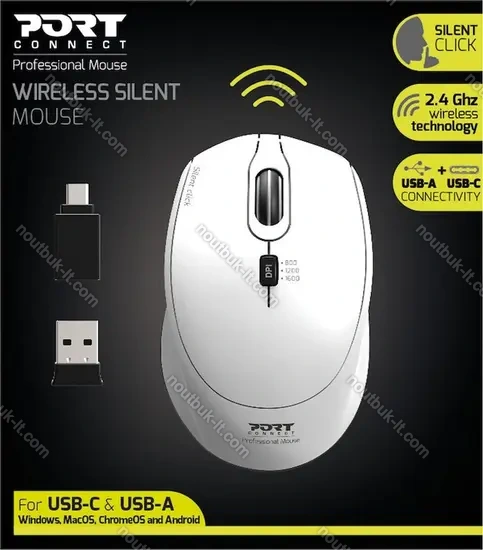 Мыш Port Designs wireless Silent Pro Mouse white, USB купить в интернет-магазине в Вильнюсе: недорого, кредит-онлайн, рассрочка 0% и бесплатная доставка по Литве