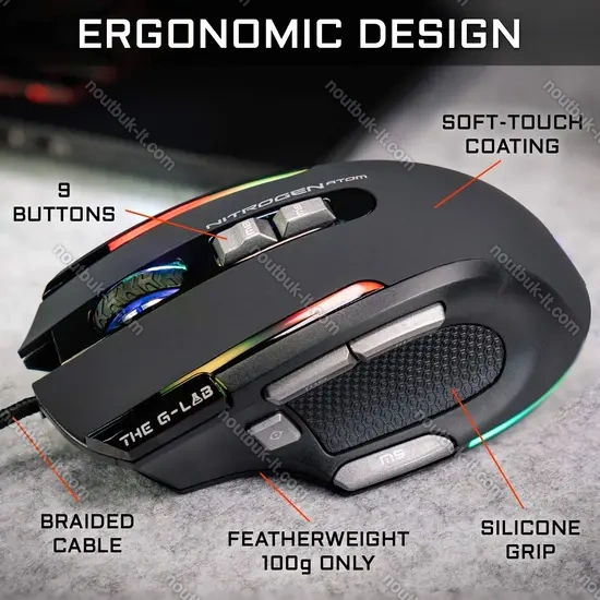 Мыш The G-Lab Kult Nitrogen ATOM Gaming Mouse, black, USB купить в интернет-магазине в Вильнюсе: недорого, кредит-онлайн, рассрочка 0% и бесплатная доставка по Литве