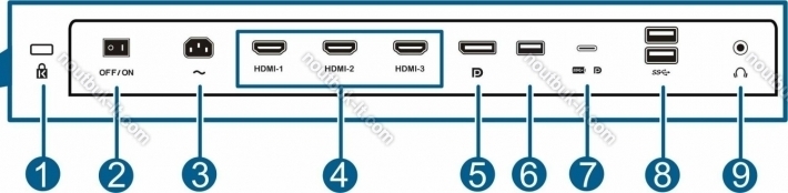 - 3x HDMI 2.0, 1x DisplayPort 1.2, 1x USB-C 3.0 with DisplayPort 1.2 (shared)