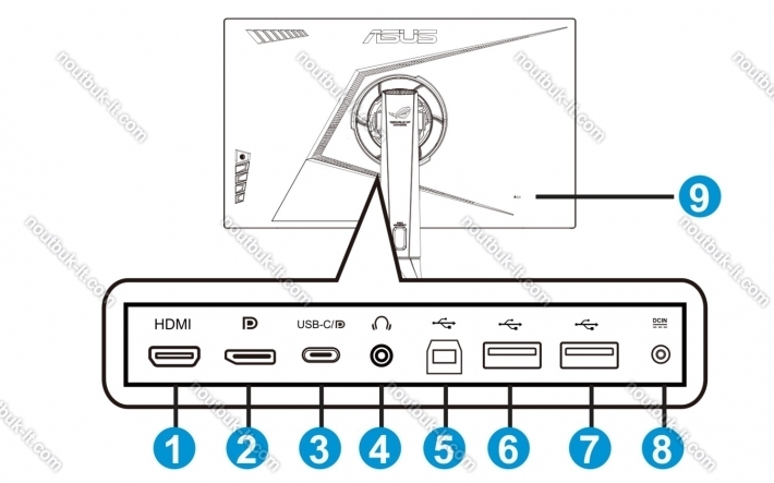 - тонкая рамка экрана, механические клавиши с D-pad, замок безопасности, Подсветка сзади (RGB), KVM switch