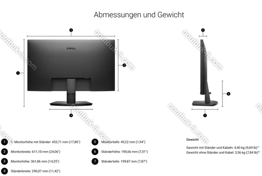 - 4.40kg (c подставкой), 3.56kg (без подставки)