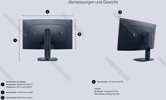 707.4x473.8x232mm (ШxВxГ) с опущенной подставкой, 707.4x583.3x232mm (ШxВxГ) с поднятой подставкой, 707.4x418.7x121.7mm (ШxВxГ) без подставки