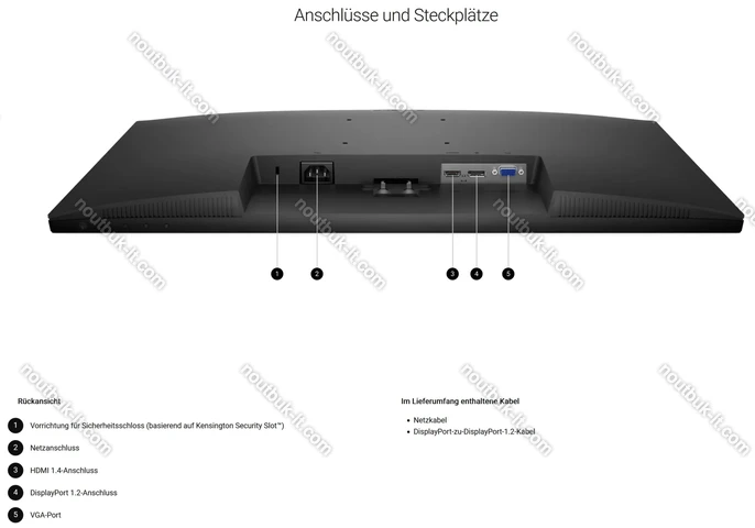 - 1x DisplayPort 1.2 (HDCP 1.4, 100Hz@1920x1080), 1x HDMI 1.4 (HDCP 1.4, 100Hz@1920x1080), 1x VGA (60Hz@1920x1080), 1x AC-In C14 (подключение к электросети)
