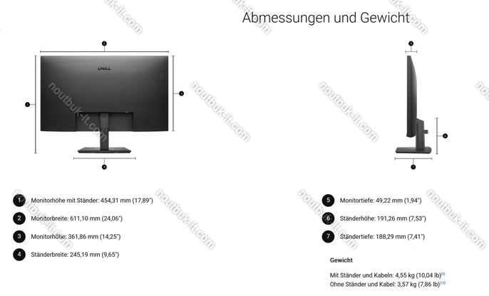 - 4.55kg (c подставкой), 3.57kg (без подставки)
