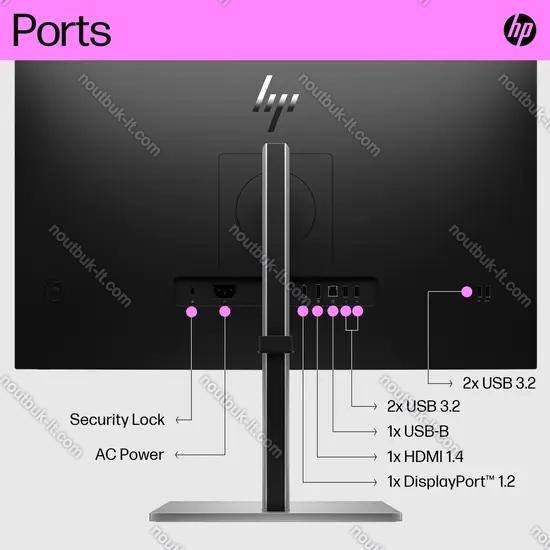 1x HDMI 1.4 (75Hz@2560x1440), 1x DisplayPort 1.2 (75Hz@2560x1440), 1x USB-B 3.0 (Upstream, 5Gb/s), 4x USB-A 3.0 (downstream, 5Gb/s), 1x AC-In C14 (подключение к сети)
