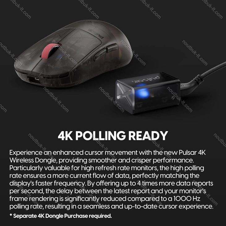 1000Hz, adjustable on 500/125Hz (wired USB/Беспроводная связь 2.4GHz); 4000Hz, adjustable on 2000/1000/500/250/125Hz (Беспроводная связь, with 4K Беспроводная связь dongle, optional)